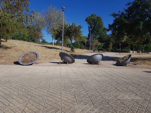 Maceteros vandalizados en el barrio Sierra de San Pedro