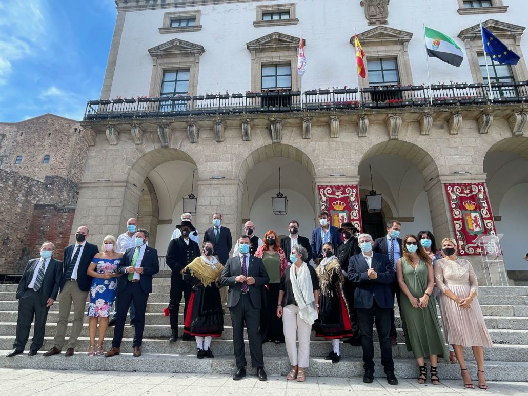 El Ayuntamiento de Cáceres ha renovado su compromiso con Extremadura en el acto de conmemoración del Día de Extremadura, con una declaración institucional consensuada por todos los grupos municipales, y leída por el alcalde Luis Salaya, que se iniciaba con un recuerdo y homenaje para todas las personas fallecidas, de acompañamiento a sus familias, y de agradecimiento a las y los profesionales que siguen, en primera línea, combatiendo esta enfermedad.