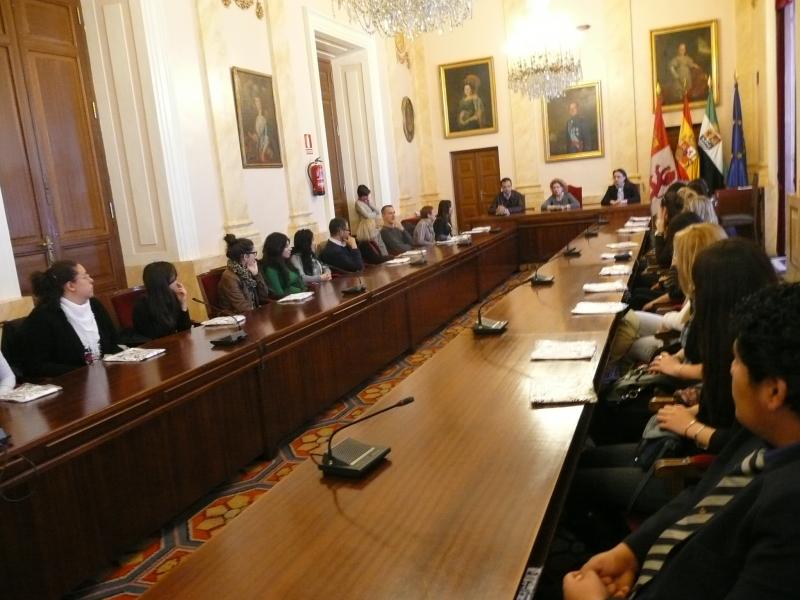 La Alcaldesa les presentó la Ciudad Monumental y les habló de las costumbres y tradiciones de Cáceres para que la conocieran antes de realizar la visita guiada que les ofreció el Ayuntamiento.